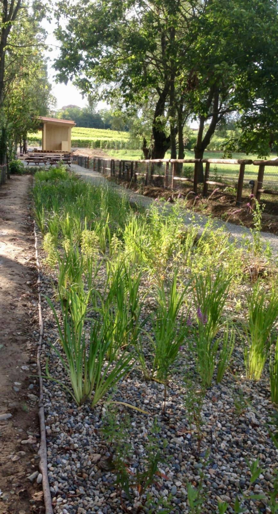 Il filtro viene piantumato con piante palustri, soprattutto Phragmites australis, che grazie alle radici profonde e robuste contribuiscono a mantenere il filtro soffice e garantiscono un costante apporto di ossigeno ai microrganismi.