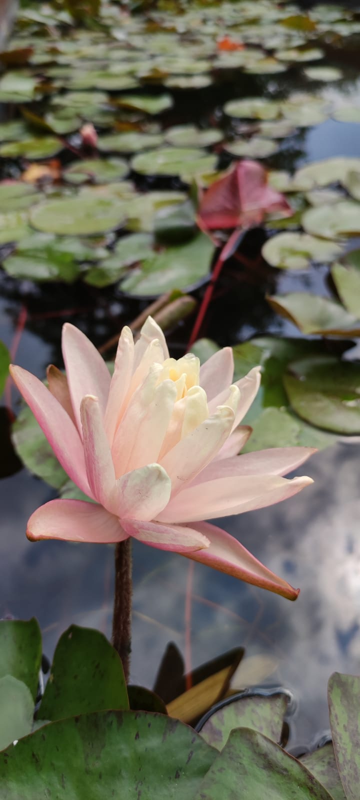Splendida varietà che produce grossi fiori color pesca che si innalzano sul pelo dell’acqua fino a 10 cm. Pianta molto fiorifera.