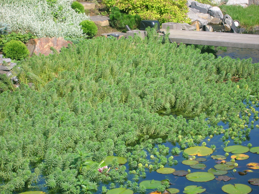Eccellente ossigenatrice e depuratrice serve come supporto per le uova dei pesci. I gambi presentano numerose piccole foglie finemente divise formando un denso tappeto piumoso in parte sommerso. ‘Miriofillo’ significa ‘Innumerevoli foglie’.